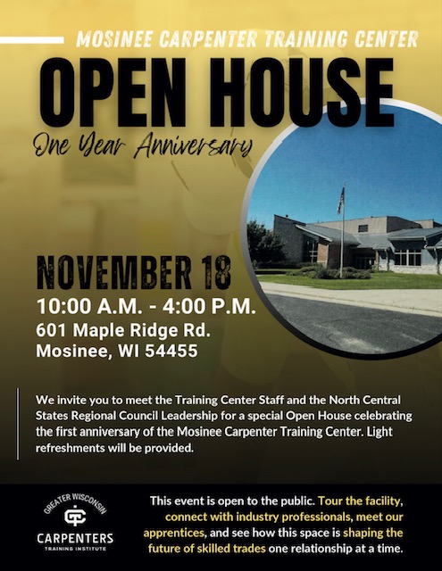 Mosinee Carpenter Training Center OPEN HOUSE-- November 18th!